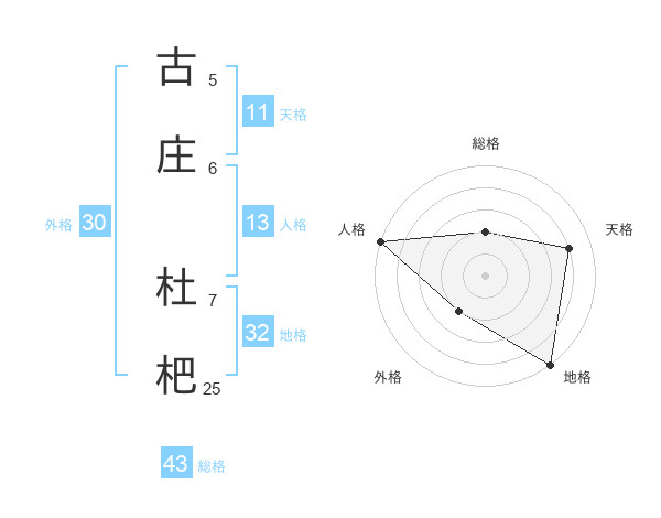 古庄 杜杷さんを姓名の画数から五運を鑑定