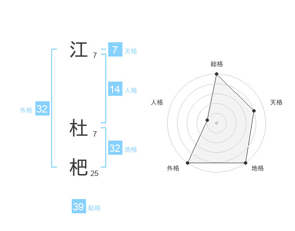 江 杜杷さんの総格は39画の5点!