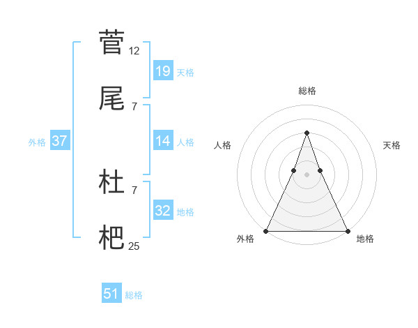 菅尾 杜杷さんを姓名の画数から五運を鑑定