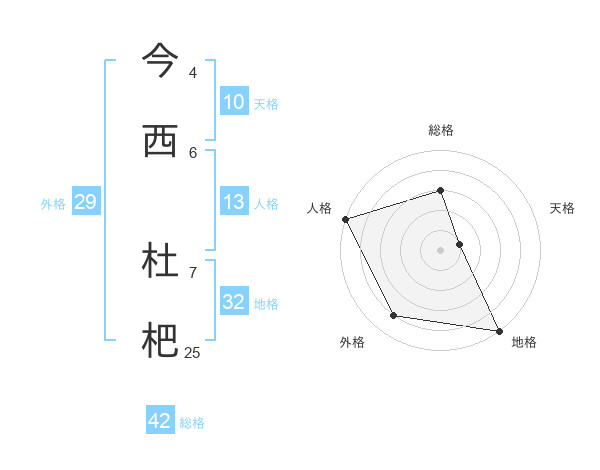 今西 杜杷さんを姓名の画数から五運を鑑定