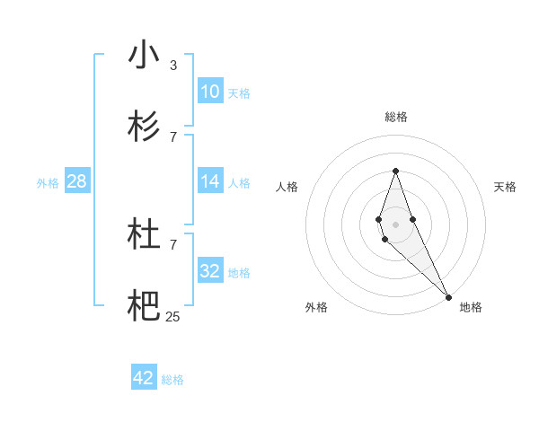 小杉 杜杷さんを姓名の画数から五運を鑑定