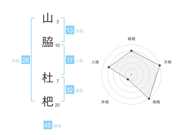 山脇 杜杷さんの総格は45画の4点!
