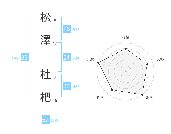 松澤 杜杷さんを姓名の画数から五運を鑑定