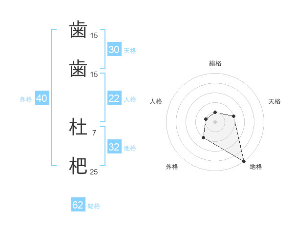 歯歯 杜杷さんの地格は32画の5点!