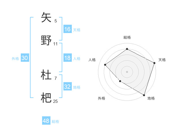 矢野 杜杷さんを姓名の画数から五運を鑑定