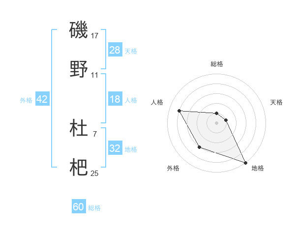 磯野 杜杷さんを姓名の画数から五運を鑑定
