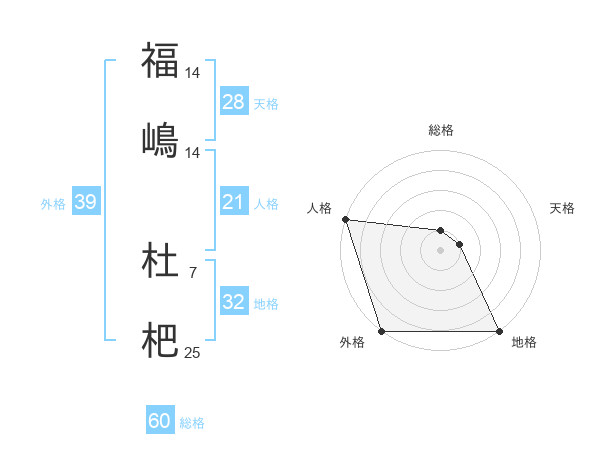 福嶋 杜杷さんを姓名の画数から五運を鑑定