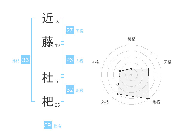 近藤 杜杷さんの総格は59画の1点!