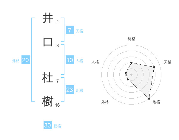 井口 杜樹さんを姓名の画数から五運を鑑定