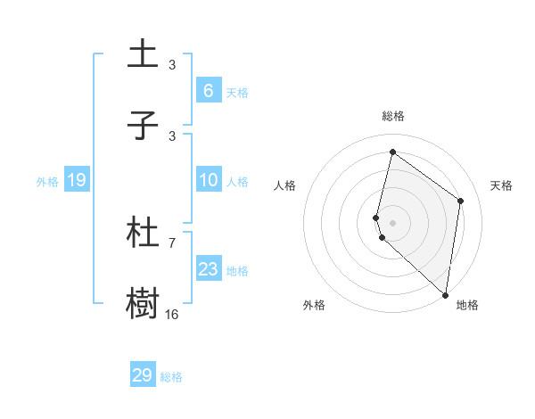 土子 杜樹さんの総格は29画の4点!