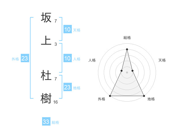 坂上 杜樹さんの総格は33画の4点!
