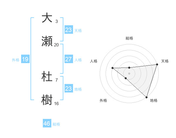 大瀬 杜樹さんを姓名の画数から五運を鑑定