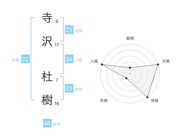 寺沢 杜樹さんの天格は23画の5点!
