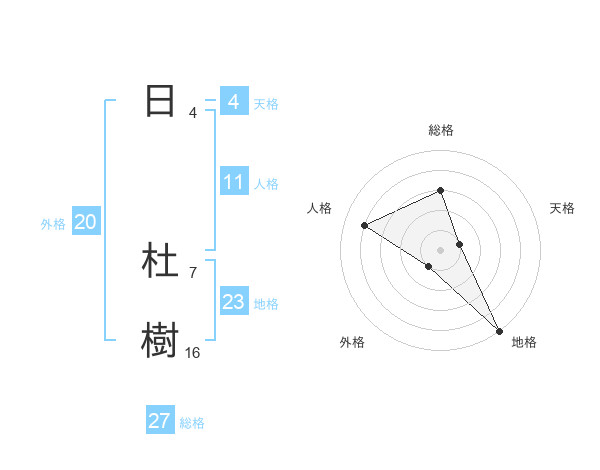 日 杜樹さんの総格は27画の3点!