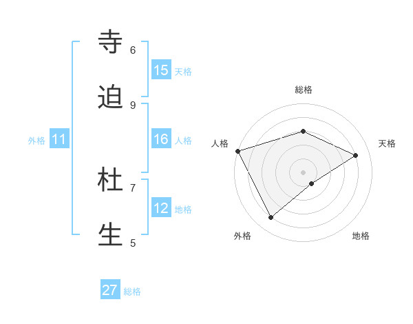 寺迫 杜生さんの総格は27画の3点!