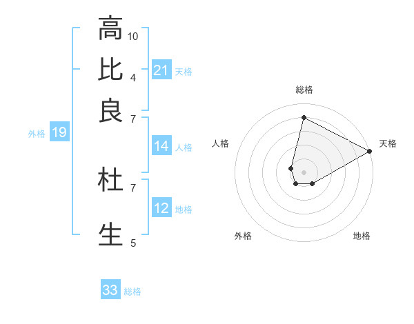 高比良 杜生さんの天格は21画の5点!