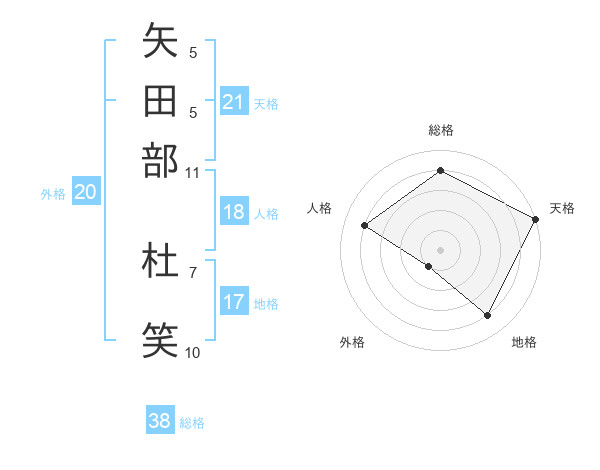 矢田部 杜笑さんを姓名の画数から五運を鑑定