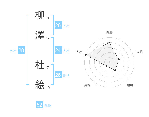柳澤 杜絵さんを姓名の画数から五運を鑑定