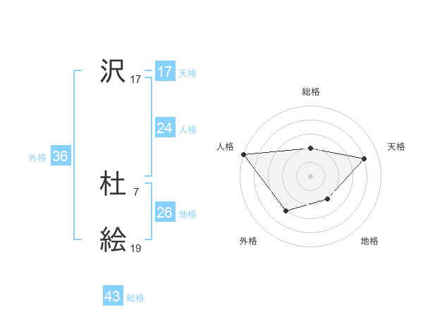 沢 杜絵さんを姓名の画数から五運を鑑定