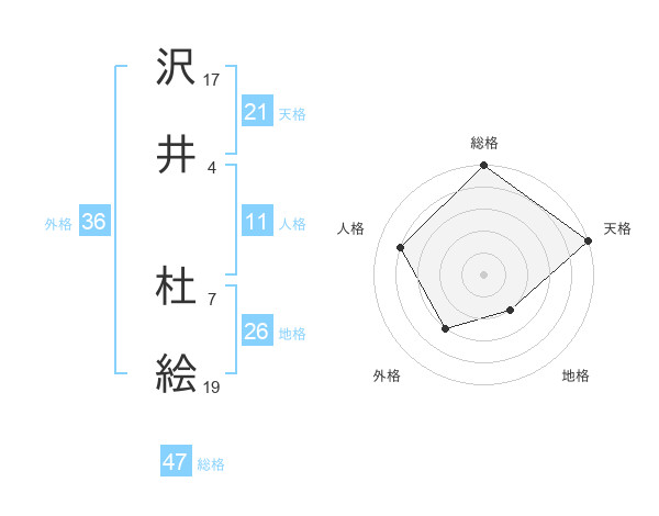 沢井 杜絵さんを姓名の画数から五運を鑑定