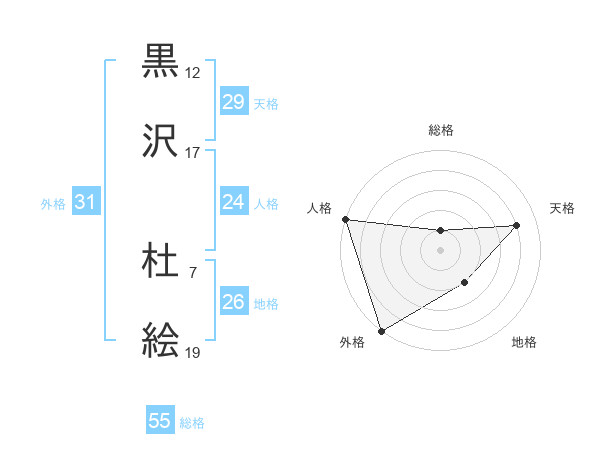 黒沢 杜絵さんを姓名の画数から五運を鑑定