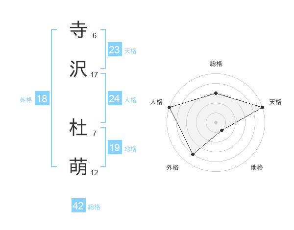 寺沢 杜萌さんの天格は23画の5点!