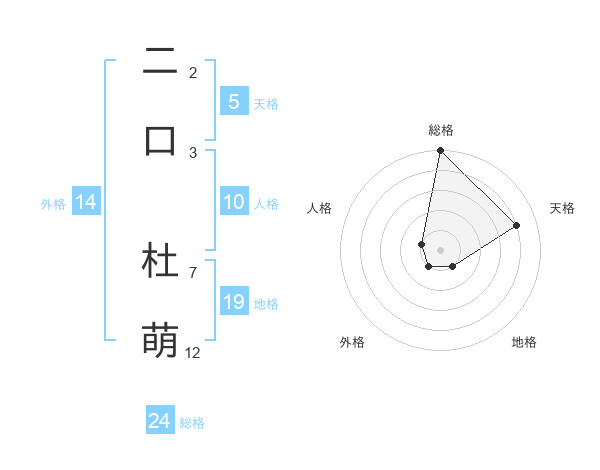 二口 杜萌さんの天格は5画の4点!