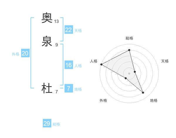 奥泉 杜さんを姓名の画数から五運を鑑定