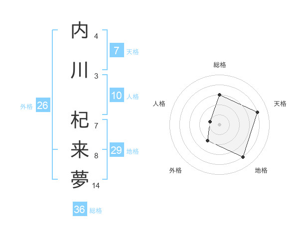 内川 杞来夢さんを姓名の画数から五運を鑑定