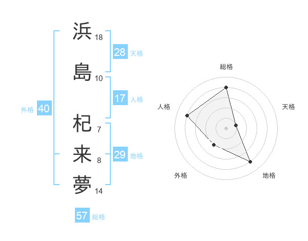 浜島 杞来夢さんを姓名の画数から五運を鑑定