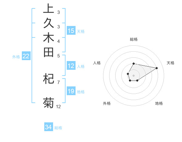 上久木田 杞菊さんを姓名の画数から五運を鑑定