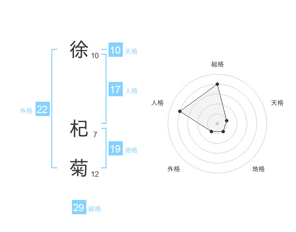 徐 杞菊さんの総格は29画の4点!