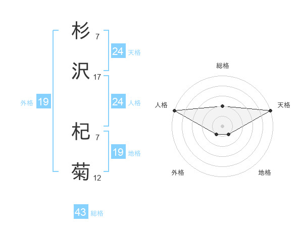 杉沢 杞菊さんを姓名の画数から五運を鑑定