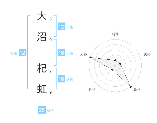 大沼 杞虹さんを姓名の画数から五運を鑑定