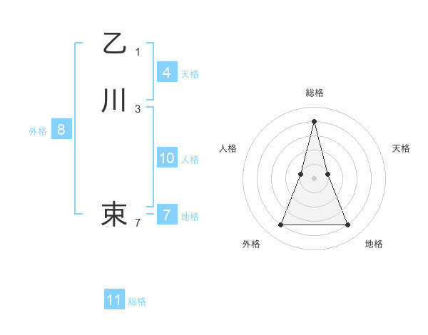 乙川 束さんの総格は11画の4点!
