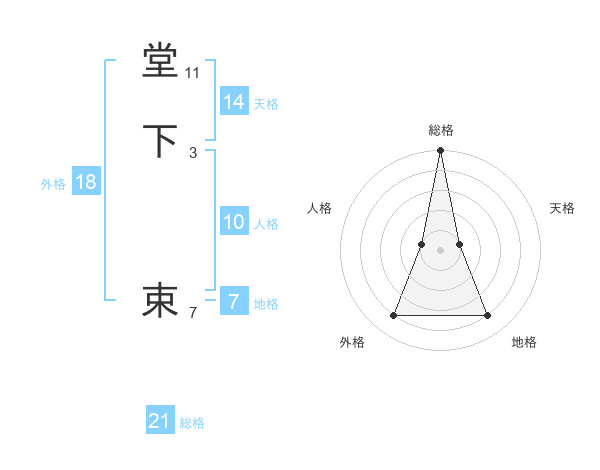堂下 束さんの総格は21画の5点!