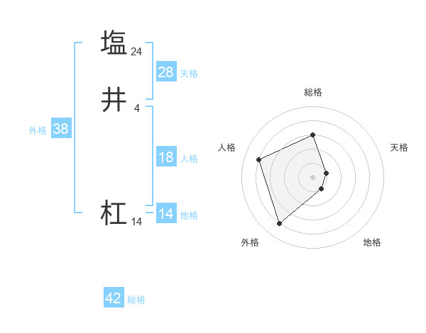 塩井 杠さんの総格は42画の3点!