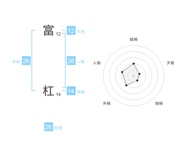 富 杠さんの総格は26画の2点!