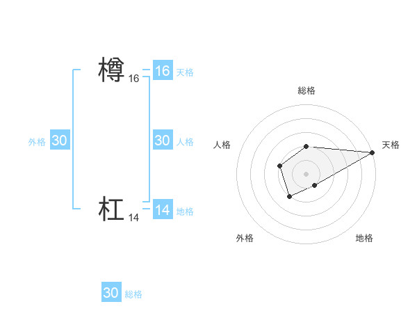 樽 杠さんの総格は30画の2点!