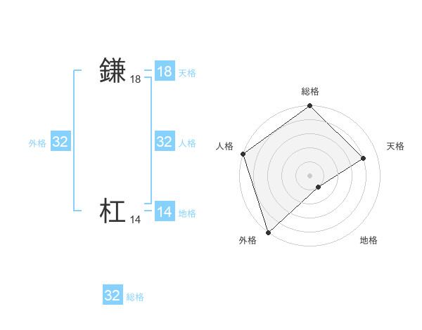 鎌 杠さんの総格は32画の5点!