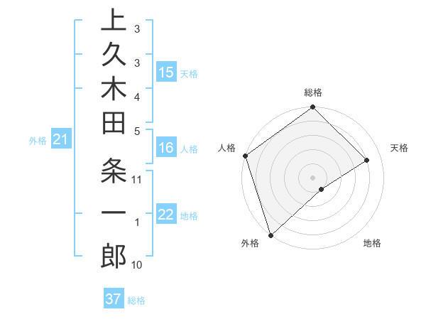 上久木田 条一郎さんを姓名の画数から五運を鑑定