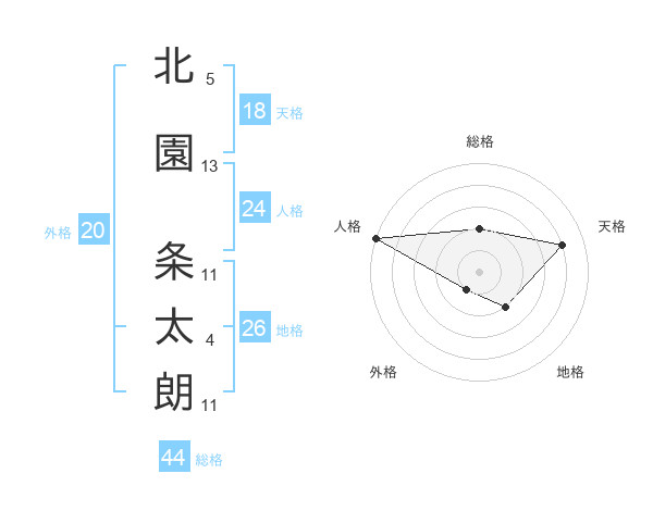 北園 条太朗さんの総格は44画の2点!