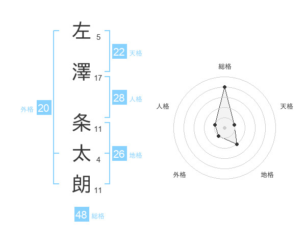 左澤 条太朗さんを姓名の画数から五運を鑑定