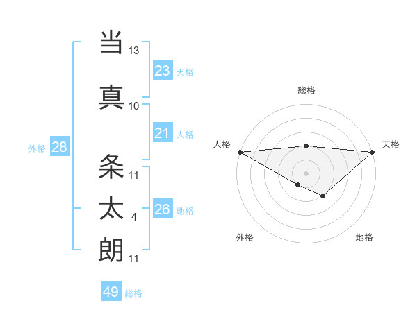 当真 条太朗さんの天格は23画の5点!