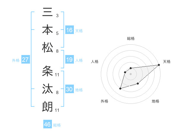 三本松 条汰朗さんを姓名の画数から五運を鑑定