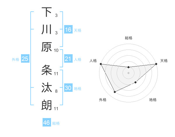 下川原 条汰朗さんを姓名の画数から五運を鑑定