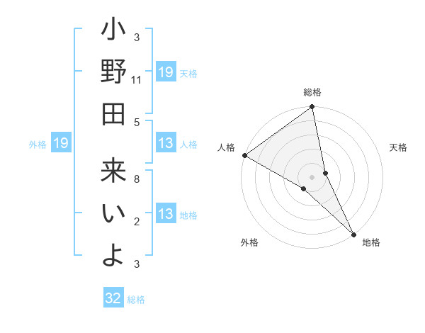小野田 来いよさんを姓名の画数から五運を鑑定