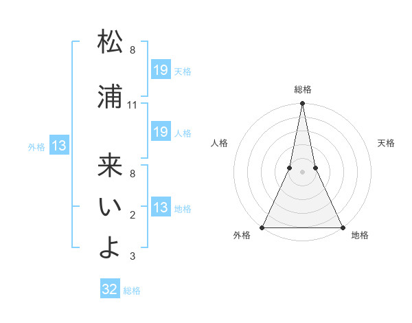 松浦 来いよさんを姓名の画数から五運を鑑定