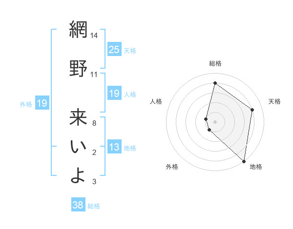 占い結果は姓名判断である以上、良い場合も悪い場合もありますが、決してお名前を誹謗中傷するものでなく、画数の自動計算によって得られたものです。また、本サイトの検索によって得られた鑑定結果で、第三者を誹謗中傷したり名誉を棄損するような行為を禁じます。