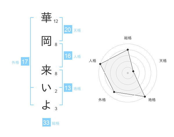 華岡 来いよさんを姓名の画数から五運を鑑定